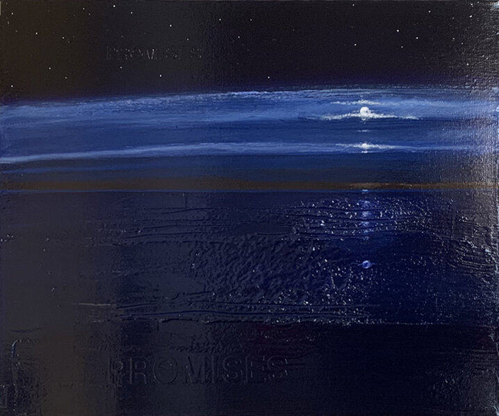 Promises Promises, 2021, acrylic and oil on canvas, 14"x18", Collection of Galin and Tamara Dent